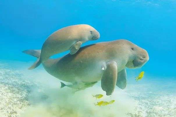 儒艮的哺乳期通常长达 18个月(约1.5年),甚至有研究发现部分幼崽会跟随母亲生活更长时间。这种海洋哺乳动物通常每胎产1仔,妊娠期约为13至14个月,幼崽需要长期依赖母亲的哺育才能独立生活。