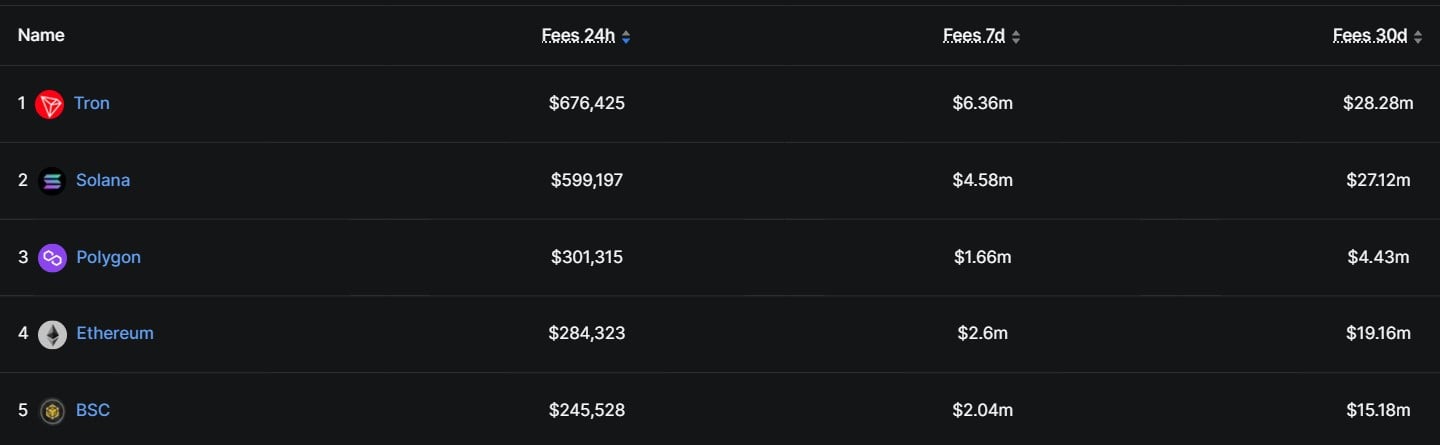 Polygon、以太坊及币安智能链等其他协议同样跻身手续费收入前五,其贡献不可忽视。