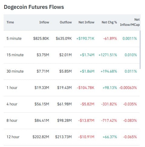 最新数据显示,5分钟、15分钟、小时级及多小时间隔的净流入均为负值,但这些变化通常反映暂时性仓位调整而非持续方向性判断。此外当整体交易量低迷时,期货资金流的百分比变化可能被放大——即便实际资金流动规模很小,也会产生看似剧烈的市场情绪突变。