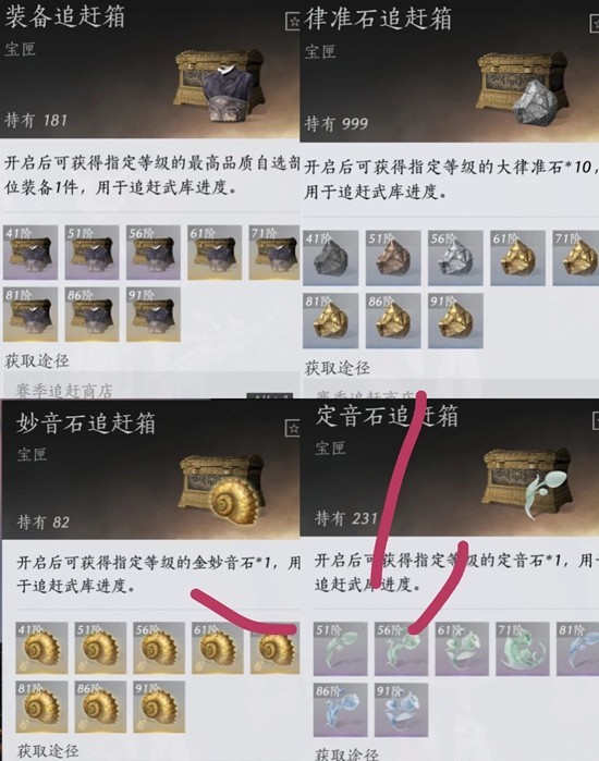 不肝商城每周买赛季追赶箱子(买满武器箱子每周10个,其他3种箱子看情况。