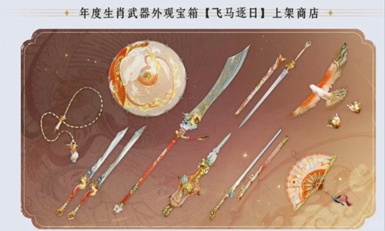 3. 同日上线马年生肖武器外观宝箱(伞外观亮眼),多买多优惠,赠送同主题名片,无时间限制。