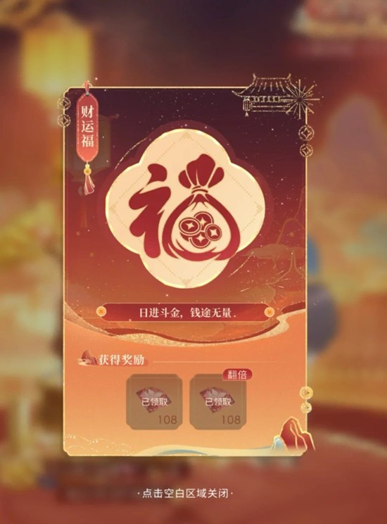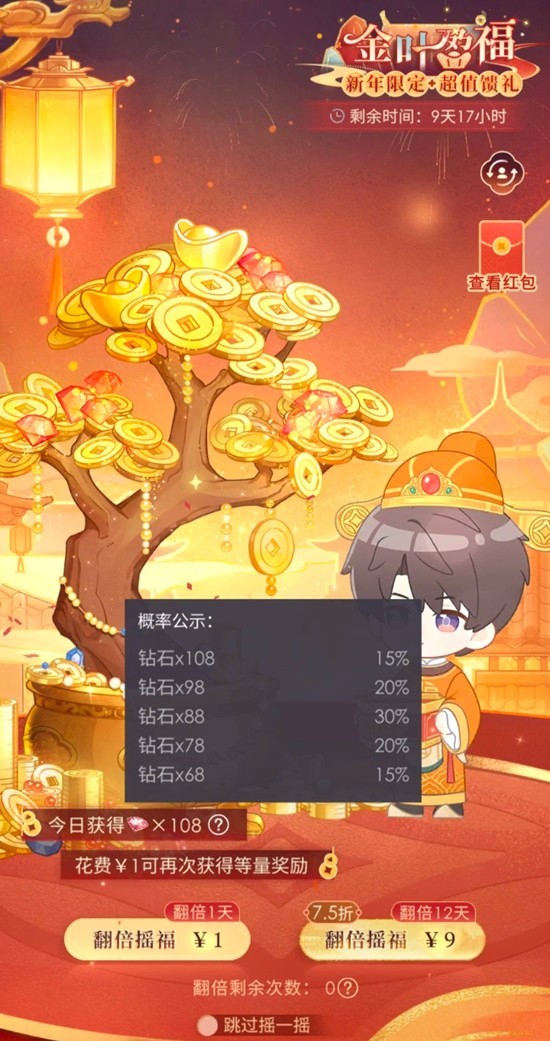 以上就是恋与深空新年翻倍活动提醒,摇钱树一定要点翻倍键的全部内容了,更多游戏资讯,攻略内容敬请关注,您的支持是我们努力的动力!