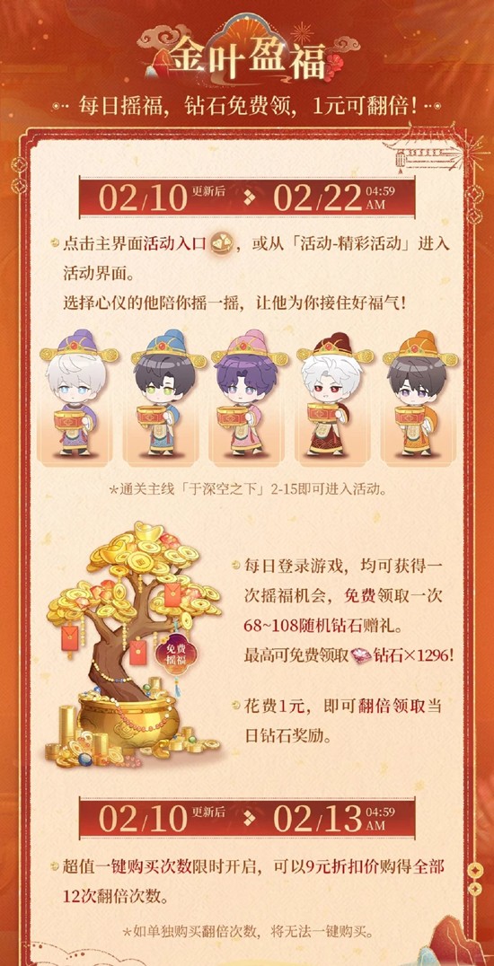 恋与深空新年翻倍活动提醒 摇钱树一定要点翻倍键