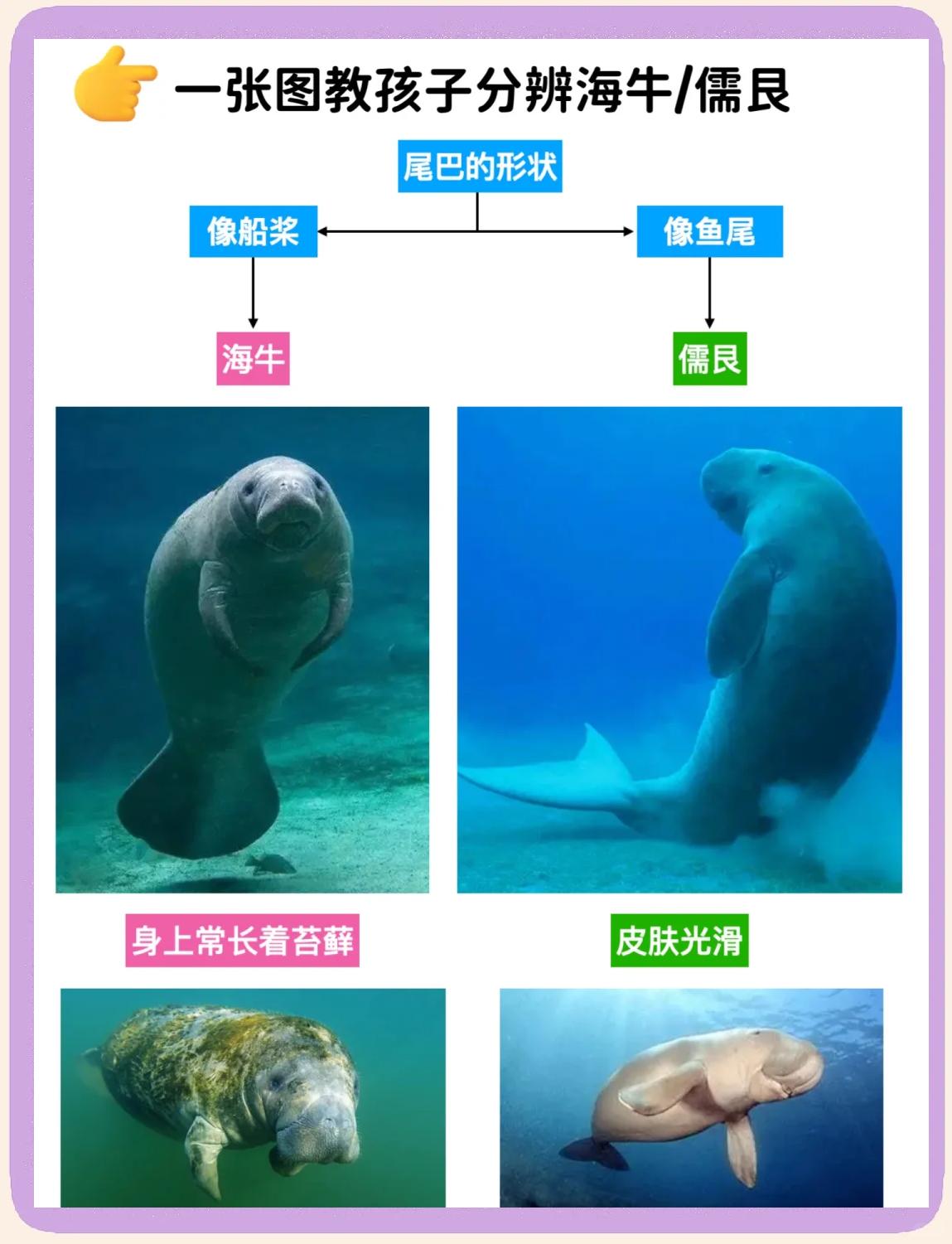 海牛:尾巴呈圆形或扇形,类似一把宽大的船桨。