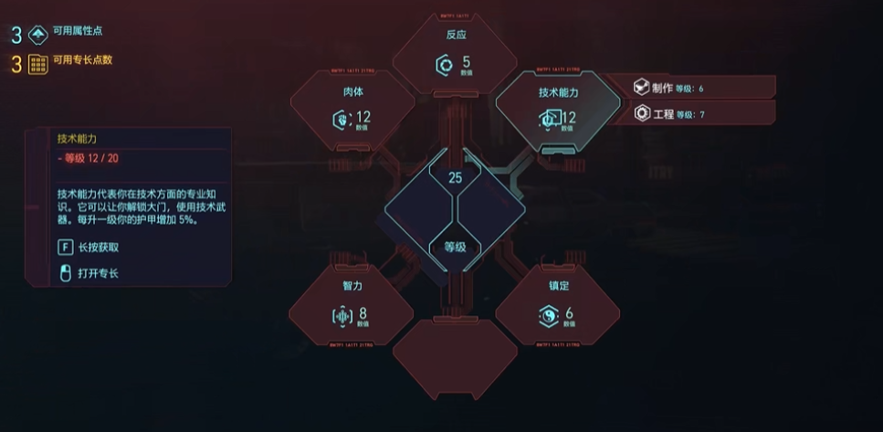 玩枪械流派的加点核心是围绕肉体、反应和技术能力三项属性展开,这是构建输出与生存能力的基础。开局时建议将肉体和技术能力各加至5点,反应加至3点,这样可以快速形成可靠的战斗力,同时兼顾角色的生命值、负重以及装备制作与拆解的能力。智力与镇定的属性在前期可以暂时忽略,以集中资源强化核心战斗属性。