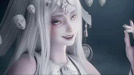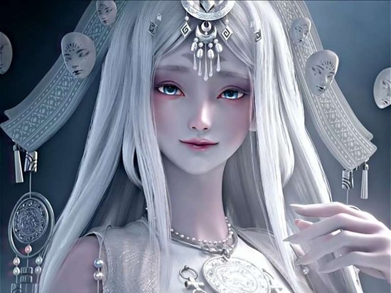 从外观来看,七界梦谭中的孟婆身着一袭中式古风服饰,拥有一头醒目的银白色长发,头戴一顶装饰极为华丽的冠冕。这顶头冠上点缀着多个面具饰品,这些面具不仅增添了视觉上的层次感,更烘托出孟婆作为神明所特有的神秘气息。她的服装细节处融入了少数民族的风格元素,例如颈间佩戴的苗族银质项圈,这些设计都让七界梦谭里的孟婆形象更加丰满且别具一格。