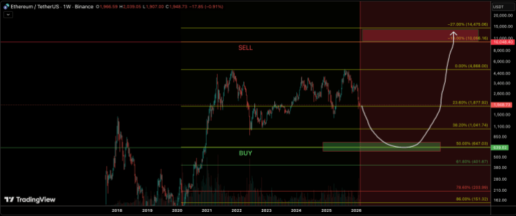 一位加密货币分析师在最新报告中指出,以太坊很可能即将迎来宏观层面的深度调整。若预测成真,这意味着该山寨币目前在1900美元上方构筑的支撑位极其脆弱,可能很快就会被击穿。