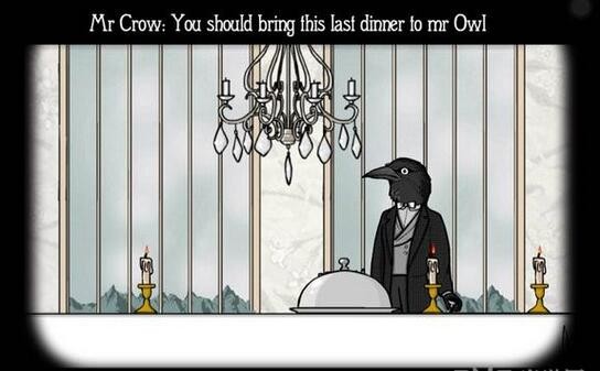 4、去找蛤蟆厨师,做好饭后发现乌鸦先生在餐桌前,告诉我们“你要把最后一顿晚餐端给猫头鹰先生”