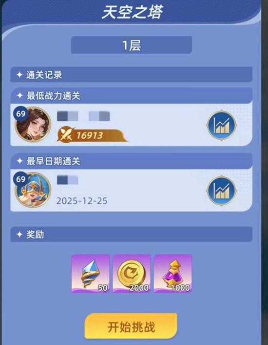 天空之塔是神召大陆中的一个闯关副本玩法,目前总共开放了2500层。玩家每成功通过一层,都能立即获得该层的通关奖励,奖励内容主要包括角色培养所必需的进阶石、金币以及经验药水等基础资源。需要注意的是,已经通关的楼层无法再次挑战,因此收益主要来源于两个方面:一是不断挑战新楼层获取首次通关奖励,二是根据历史最高通关层数领取每日结算的日常奖励。