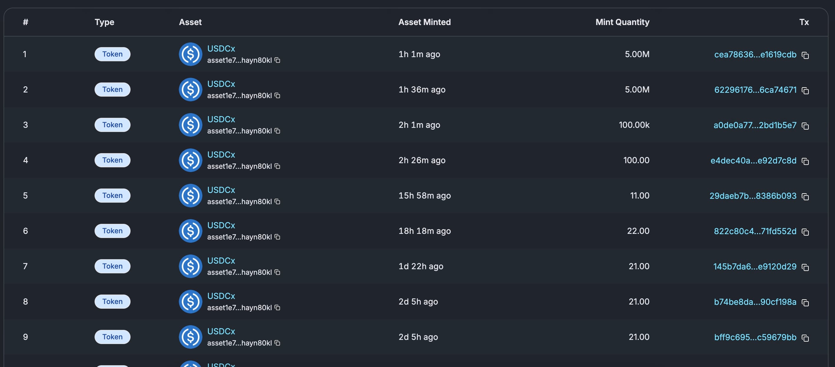 今晨另一则重要消息关乎卡尔达诺与USDC。Cexplorer数据显示,Circle的USDC将在未来两天内如期登陆卡尔达诺——区块链上已出现42笔铸币交易,测试交易量亦突破数百笔。