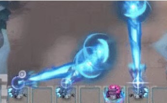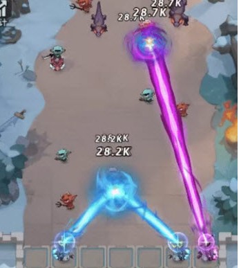技能和火焰法师一样是射线形的攻击方式,但是有一个非常大的区别,帝斯拉的技能会跟随怪物的移动,跟踪攻击,并且对路径上的所有敌人造成轰击伤害。