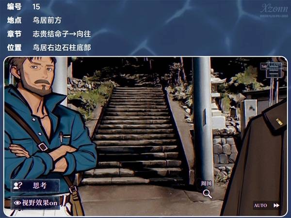 在志贵结命子(太太)的章节中,建议打开“视野效果on”来查找贴纸的地点。