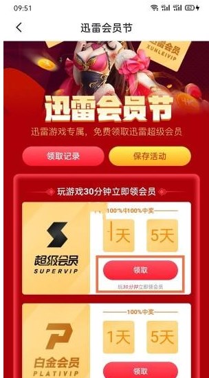 第三步:通过迅雷APP内"我的游戏中心"参与活动,完成指定游戏任务还能额外获得1-5天会员体验。