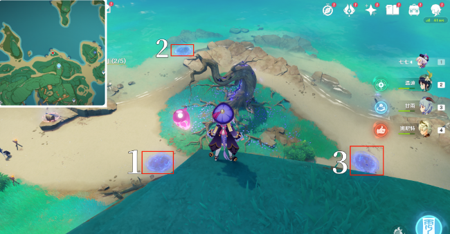 1、打开元素视野,站在图中的落雷处引雷。