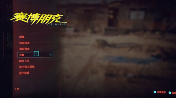 首先先打开赛博朋克2077游戏进入到游戏初始页面,找到设置选项,点击进入。