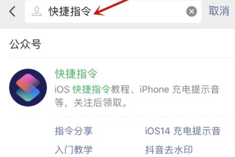 3、然后点击ios快截指令,再点击“进入公众号”。