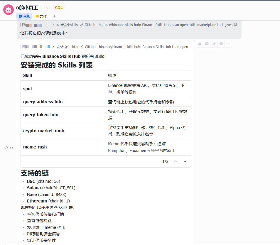 “安装这个 Skills:https://github.com/binance/binance-skills-hub”