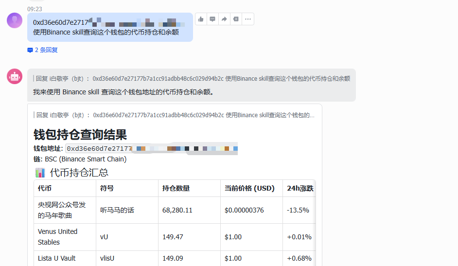 目前,Binance Skills Hub 的钱袋查询功能只支持这 3 条链: