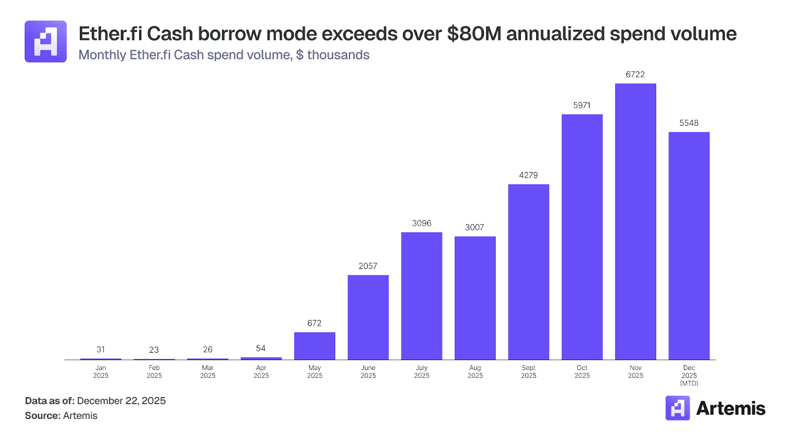 加密卡让用户能在传统商户处使用稳定币和加密货币进行消费,是数字支付领域增长最快的细分市场之一。其交易额从 2023 年初的每月约 1 亿美元增长到 2025 年底的超 15 亿美元,复合年增长率达 106%。按年计算,该市场规模现已超 180 亿美元,与同期仅增长 5% 的点对点(P2P)稳定币转账(190 亿美元)不相上下。