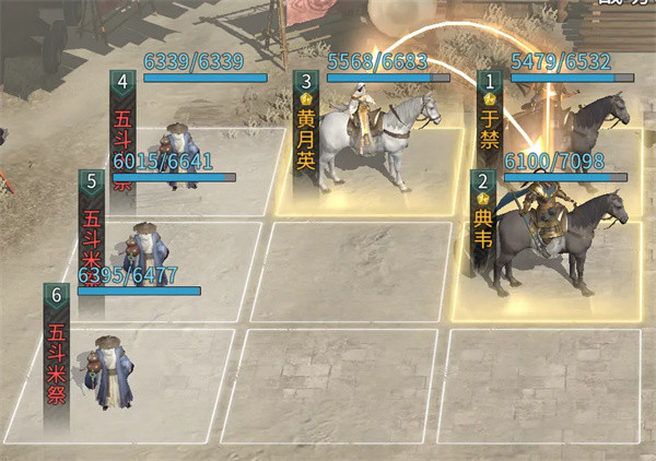 兵种站位:在队伍最后一列放置3个五斗米祭。