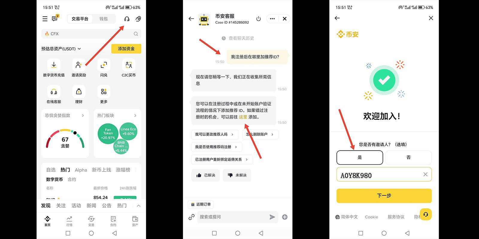 币安补填邀请码步骤:
