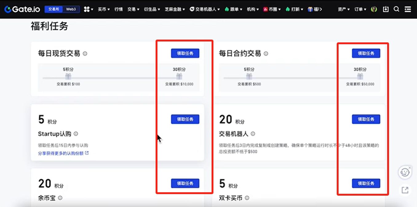 我们可以通过以下简单的一些任务,就可以获得相关的一些积分。积分最终就可以获得最高6666美金的收益。第一次来我们就可以把相关任务都做一下,相关的领取都进行领取一下。领取完成之后我们就可以按照要求去做相关的一些任务。比如说合约交易还有现货交易,包括相关的一些认购,还有余币宝。