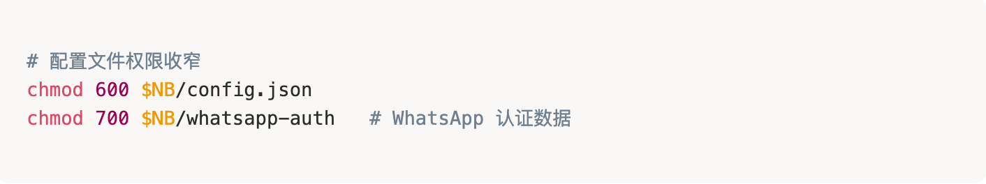 - 一定要为每个通讯渠道(Channel)设置白名单(`allowFrom`),否则任何人都能和你的 Agent 聊天: