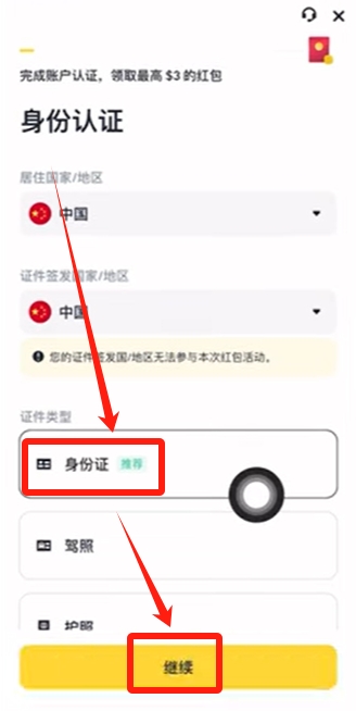 身份验证阶段推荐使用证件完成认证,通过人脸识别后即可完成注册。苹果用户需注意使用非美区Apple ID下载官方APP,避免误装功能受限的Binance.us版本。