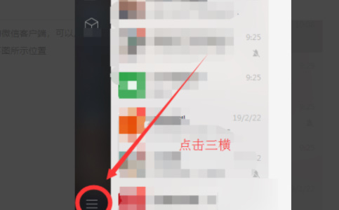 1. 启动电脑版微信后,定位到界面右下角的菜单图标(三条横杠标志)。