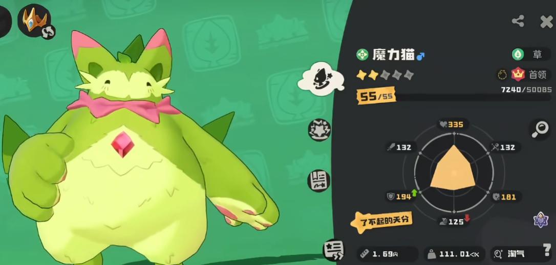 综上所述,喵喵及其最终形态魔力喵属于典型的策略型辅助坦系精灵,核心价值在于高强度生存能力与可持续作战表现。由于双攻数值一致,在实战中更常选择魔攻路线进行技能构筑,兼顾功能性与输出稳定性。该角色不侧重爆发效率,而强调战局控制与资源积累,适合偏好稳健推进玩法的玩家群体。