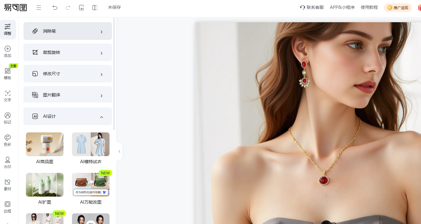 相较于传统PS软件,易可图特别针对电商从业者开发了多项智能化功能: