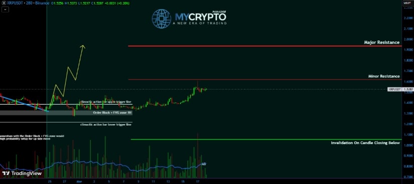 XRP突破下降阻力线建立新支撑,受控积累表明若看涨动能维持,有望上探1.93美元。来源:MyCryptoParadise on TradingView