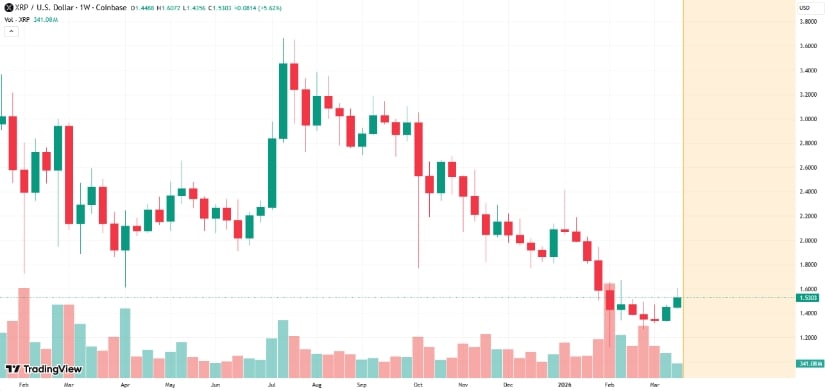 ChartNerdTA指出XRP上升三角形态,在市场复苏与Ripple采用背景下涨至1.53美元。来源:ChartNerd via X