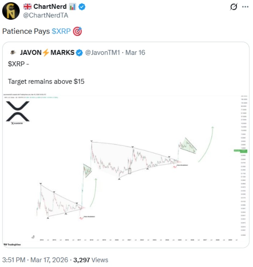 与此同时,更长期预测持续流传。分析师Javon Marks发现多年期上升三角形态,暗示随时间推移将达更高目标。但此类推测仍需结构性增长持续验证。