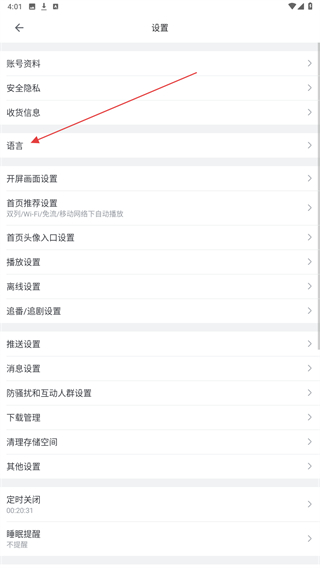 3、在设置界面中,滑动查找“语言”设置,并点击进入。