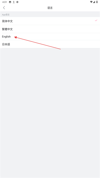4、在语言选择界面中,点击“English”,即可完成语言切换。