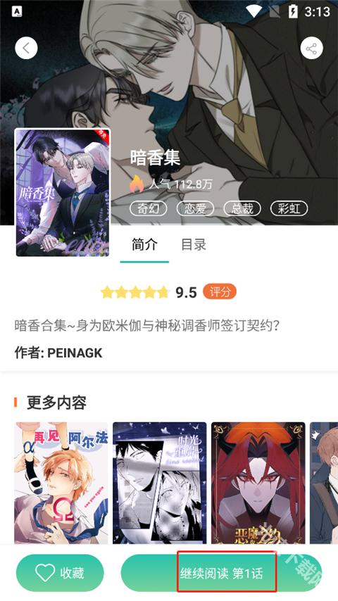 1. 启动应用后,选择一部喜爱的漫画并点击“继续阅读”。