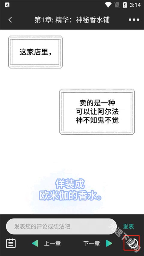阅读界面点击一下,就会出现功能按钮,可以上下章,也可以进行评论。