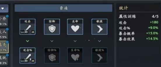1、武将养成的维度不少,首先等级提升是最必要的,每30级需要使用信物来突破方能继续提升等级。