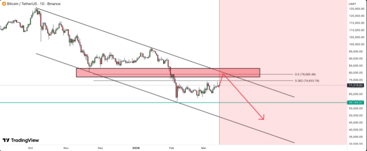 另一方面,多头仍有可能重掌主动权。若比特币价格突破82,000美元,将冲击下降通道上轨,或引发趋势反转。