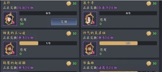 通过任务或是活动都可以获得信物,攒齐一定数量的信物后便可用于解锁武将。