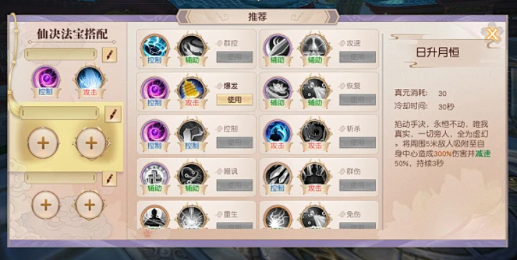 合理选择属性相辅的法宝可激活额外增益效果,建议根据角色定位优先选择攻击型或防御型装备。心法系统则提供战斗场景适配方案,实现攻防策略的动态调整。