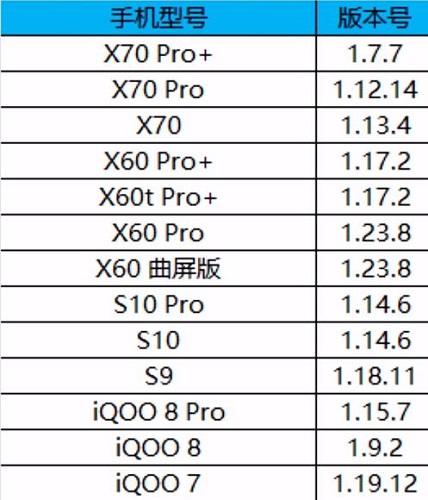 OriginOS Ocean内测机型名单: