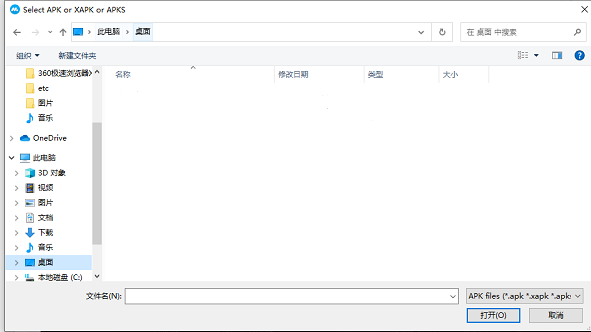 3、点击完图片中的图标后会弹出来界面,然后选择我们要安装的apk文件。