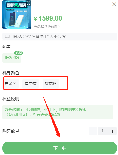 3、点击进入以后,选择购买,就可以选择你想要的颜色来下单了。
