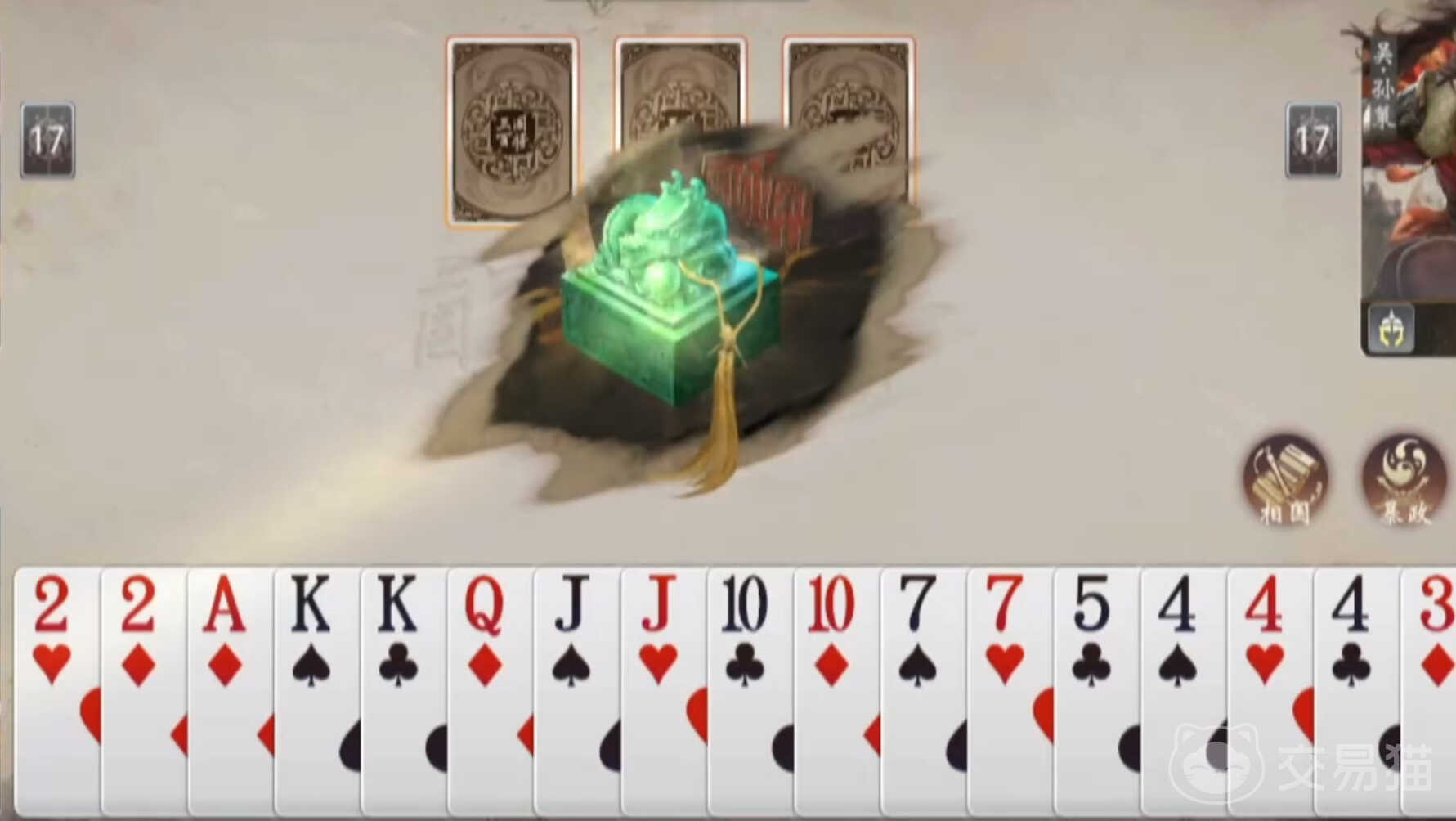 坐骑系统亦显著影响董卓的操作空间。例如搭载“大象”坐骑时,开局额外获得两张牌,大幅提升囤牌容错率与组合成功率;而选用“爪黄飞电”则利于强化三带类打法,通过高频次三带出牌实现稳定过牌。面对农民协同压制(如吕蒙释放特殊提示信号),应暂缓激进出牌,转为稳健摸牌,同时预判对手是否持有王炸——若确认对方存在该终极牌型,须提前规划炸弹储备,避免因压制力不足导致局势失控。