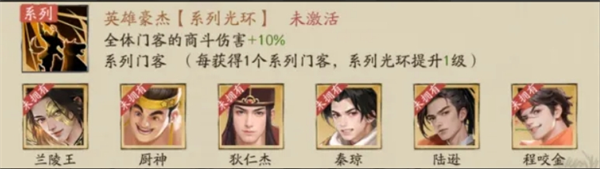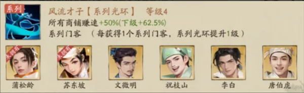 玩家集齐系列所有门客后将激活对应光环,大幅提升赚速,每激活/提升一级系列光环就能得到对应的赚速加成。