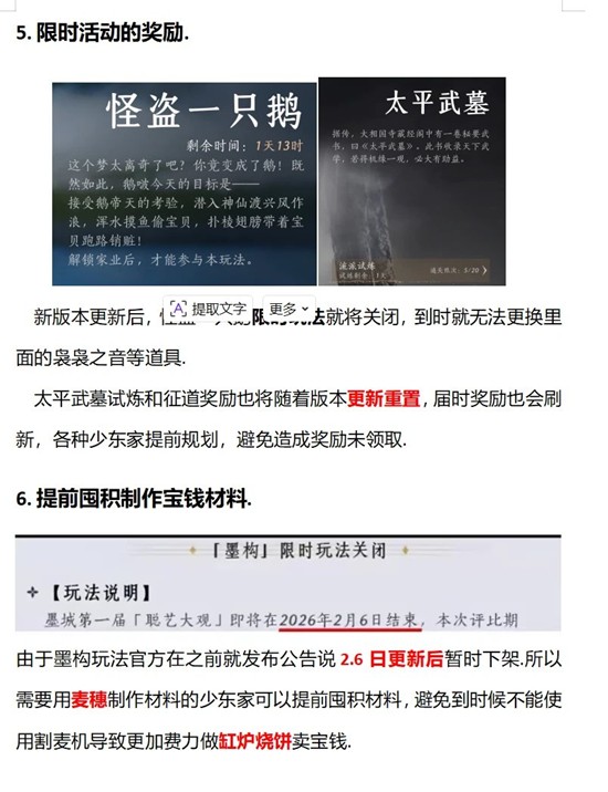 墨城第一届「聪艺大观」即将在2026年2月6日结束,本次评比期由于墨构玩法官方在之前就发布公告说2.6日更新后暂时下架.所以需要用麦穗制作材料的少东家可以提前囤积材料,避免到时候不能使用割麦机导致更加费力做缸炉烧饼卖宝钱.