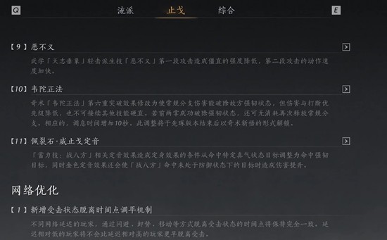4.延迟优化,后摇打断优化,挺好的,照顾了各个武学平衡,然后也照顾了各地玩家体验。