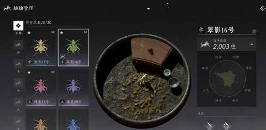 每只蛐蛐可以培养五次,简单测试优先级是: